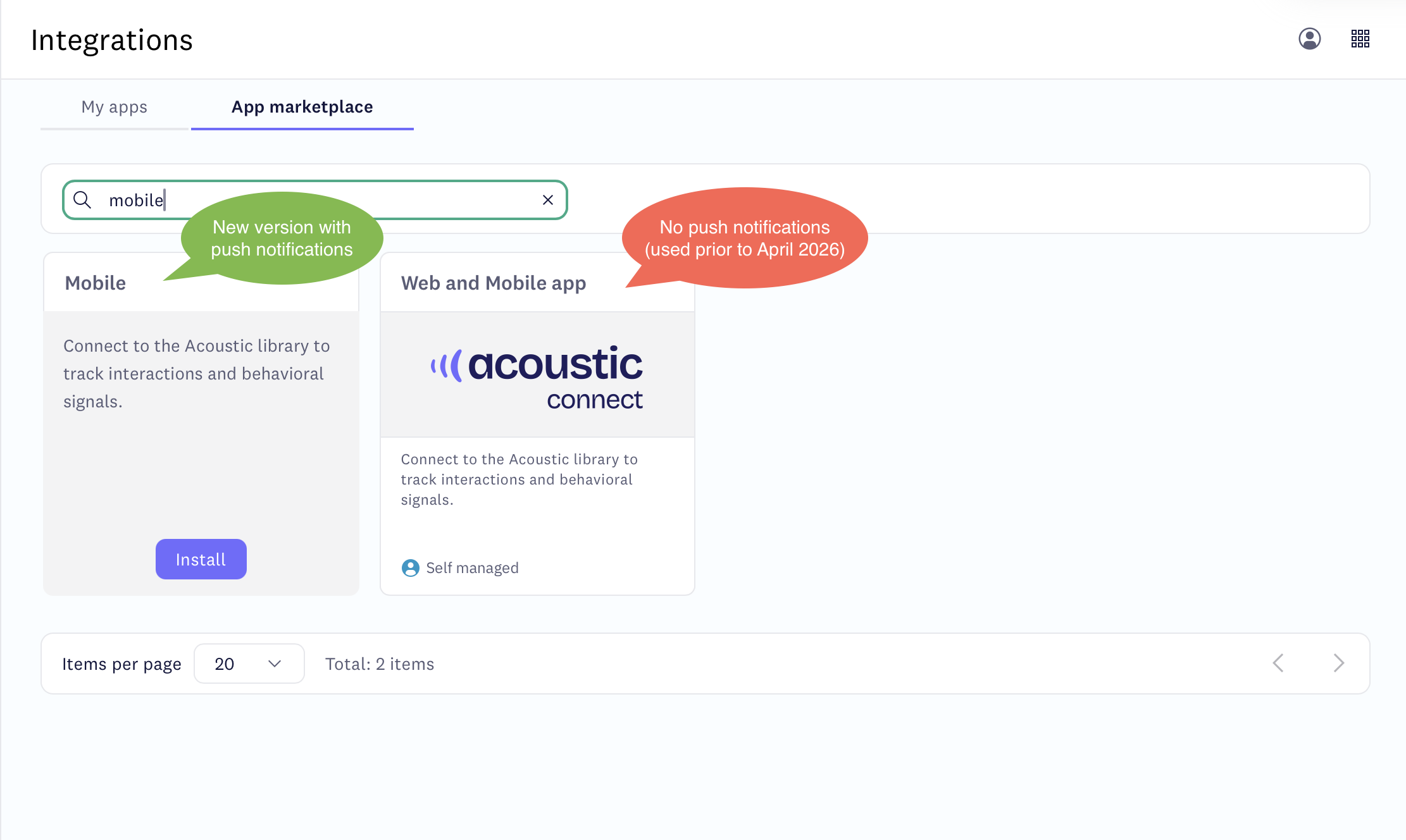 ImportantUse an app key generated through the new Mobile app integration in Connect. Older Web and mobile integrations created before our April 2026 release do not support push notifications.