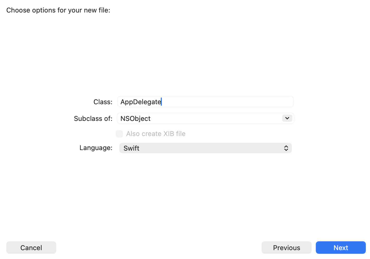 - In Xcode, click File > New > File from template > Cocoa Touch Class.